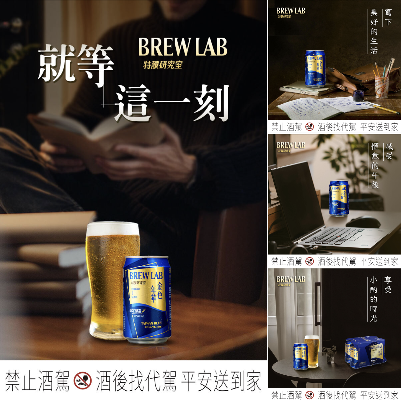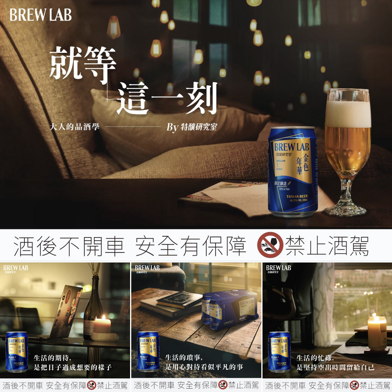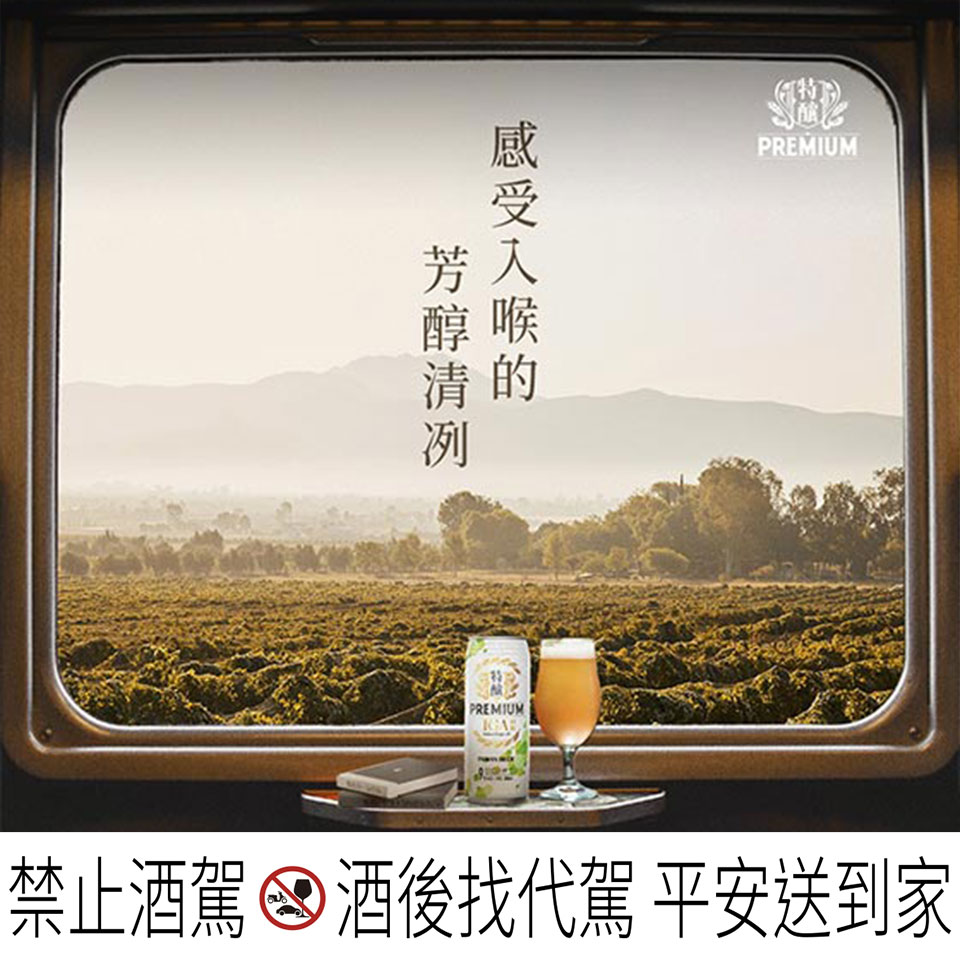 以麥田為背景為意象,強化溝通100%全麥釀製工法,搭配簡約大氣感設計突顯台灣啤酒 特釀研究室的原料天然且精心釀製過程。