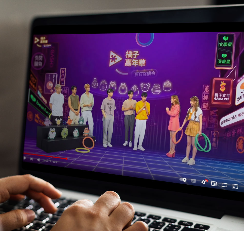 聚集超人氣主持人、超夯話題偶像男團 原子少年、電競直播主與話題十足的Vtuber:十五號、歐貝爾,開啟連續四天的橘子嘉年華連續不間斷的直播節目,鞏固既有TA遊戲族群玩家準時收看之外,更加擴散受眾範圍,締造數十萬人同時上線觀看紀錄,回扣橘子集團「泛娛樂」目標定位,鞏固玩家心中品牌領導地位。