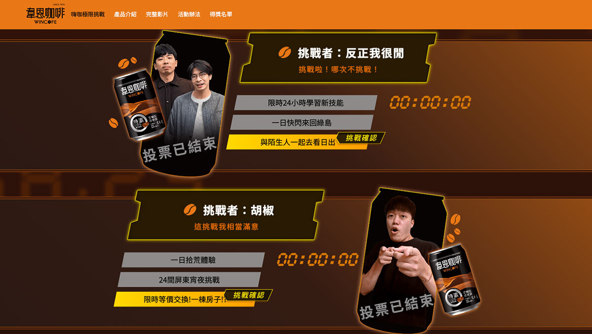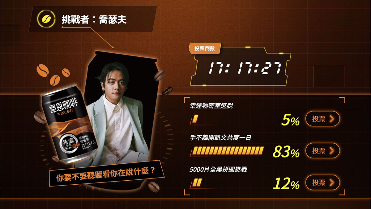 隨著現煮咖啡的興起,罐裝咖啡整體市場在商業市場上廣受衝擊,韋恩咖啡2023年的數位課題為如何將高流量的Youtuber結合並創造出有趣的議題,將流量回饋扣合至品牌本身。 本次任務主要想以韋恩之機能性「強力脫困」概念,不睡到讓你變嗨咖,延伸至高流量Youtuber的極限挑戰,延伸意志造成一波網路流量浪潮。