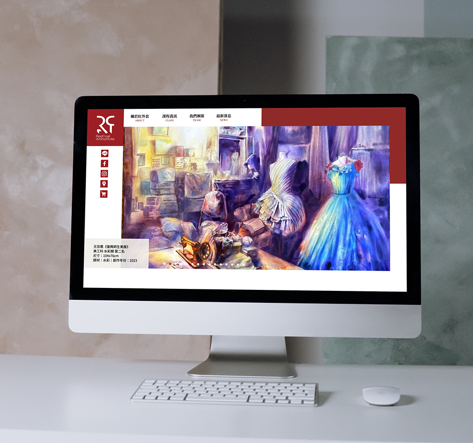 運用品牌色貫穿整體視覺設計,搭配紙質紋理與留白元素,打造兼具溫度與美感的視覺體驗。為強化品牌視覺記憶,頁面設計旋轉 Logo 動態,展現紅外套獨有的創作活力。內容排版乾淨俐落,清楚傳達品牌理念及課程資訊。整體網站特別留意視覺美感、閱讀流暢度,以呼應紅外套親切及專業的品牌調性。